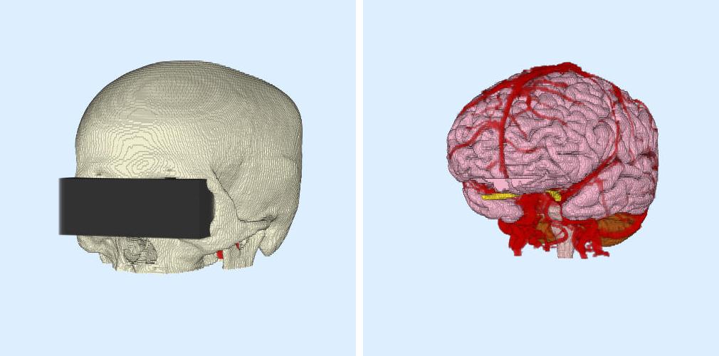 バイオニックヒューマノイド(=ヒトや実験動物の代わりとなるセンサー付精巧人体モデル)の基礎設計図にもなっている「東京大学脳神経外科 頭部3DCGモデル」は,同プログラムの研究の一環として開発されたものであり,世界最高レベルの精巧な頭部3DCGモデルですが,このモデルは検体データを基礎として非常に膨大な開発時間をかけて作成された健常成人(アジア人男性)の頭部解剖構造の標準化モデルです.